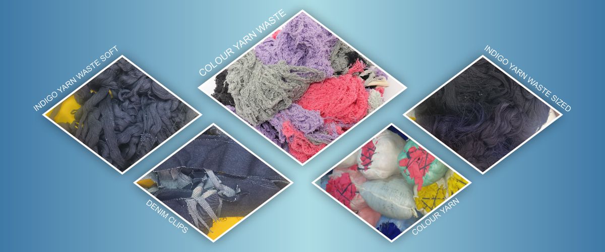 This refers to the soft, fibrous waste generated during the production of indigo-dyed cotton yarns, primarily for denim. It is collected from the roving and spinning stages after the yarn